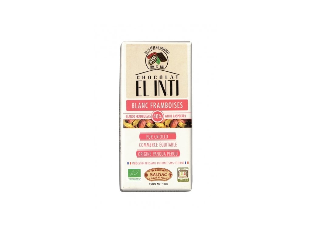 Bílá čokoláda s malinami BIO 40% kakaa 100g Saldac